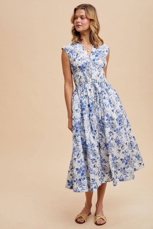 FLORAL PRINT PUFF SLEEVE SQUARE NECK MIDI DRESS