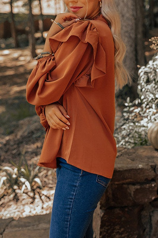 Pumpkin Spice Pintuck Flutter Sleeve Top